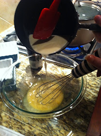 Pour cream slowly into egg mixture. Mix well, and you have your creme brulee batter!